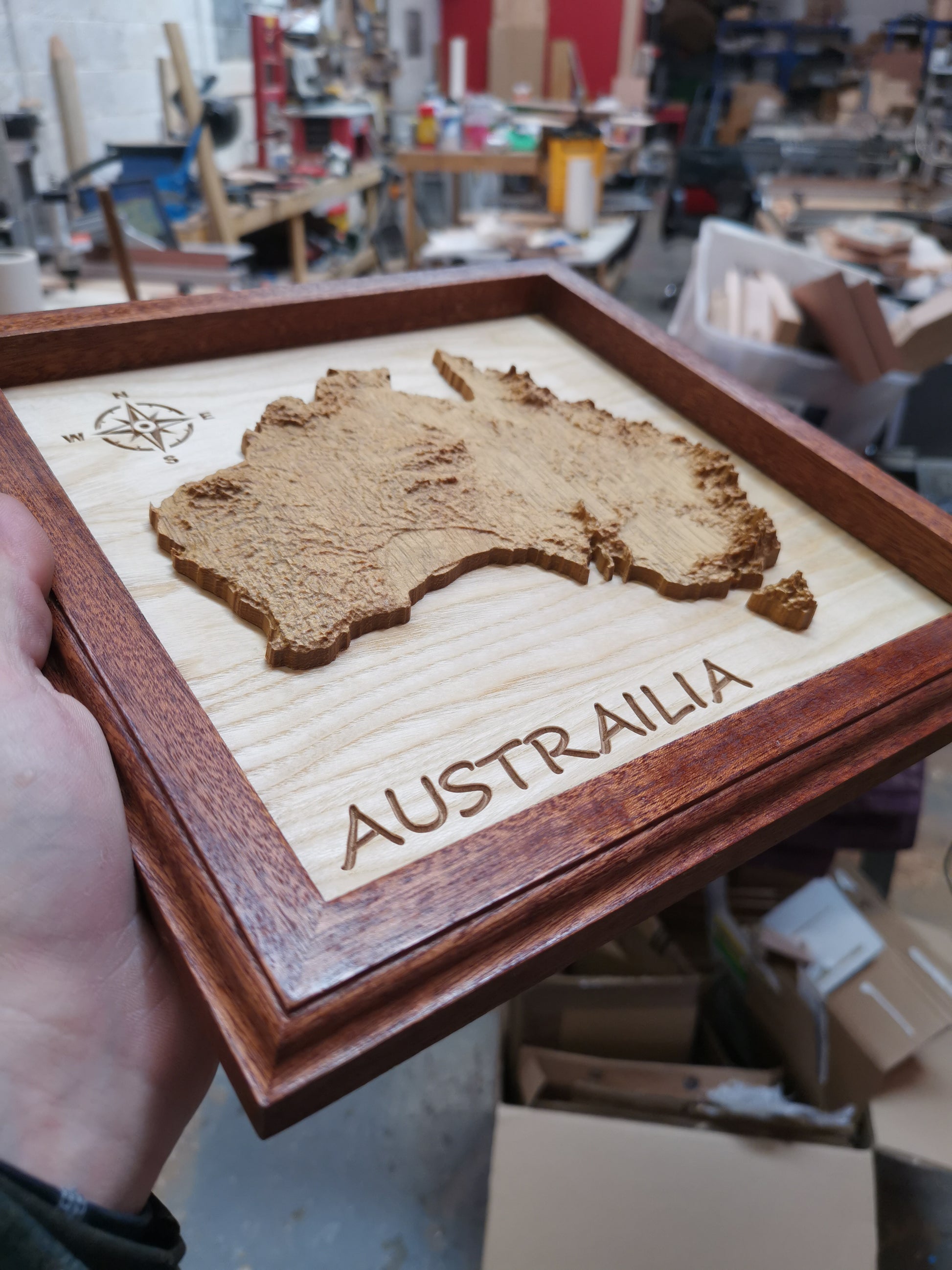 Stunning 3d carved map of Austrailia, crafted using accurate topographical data for a true depiction of how the country has been shaped over time.