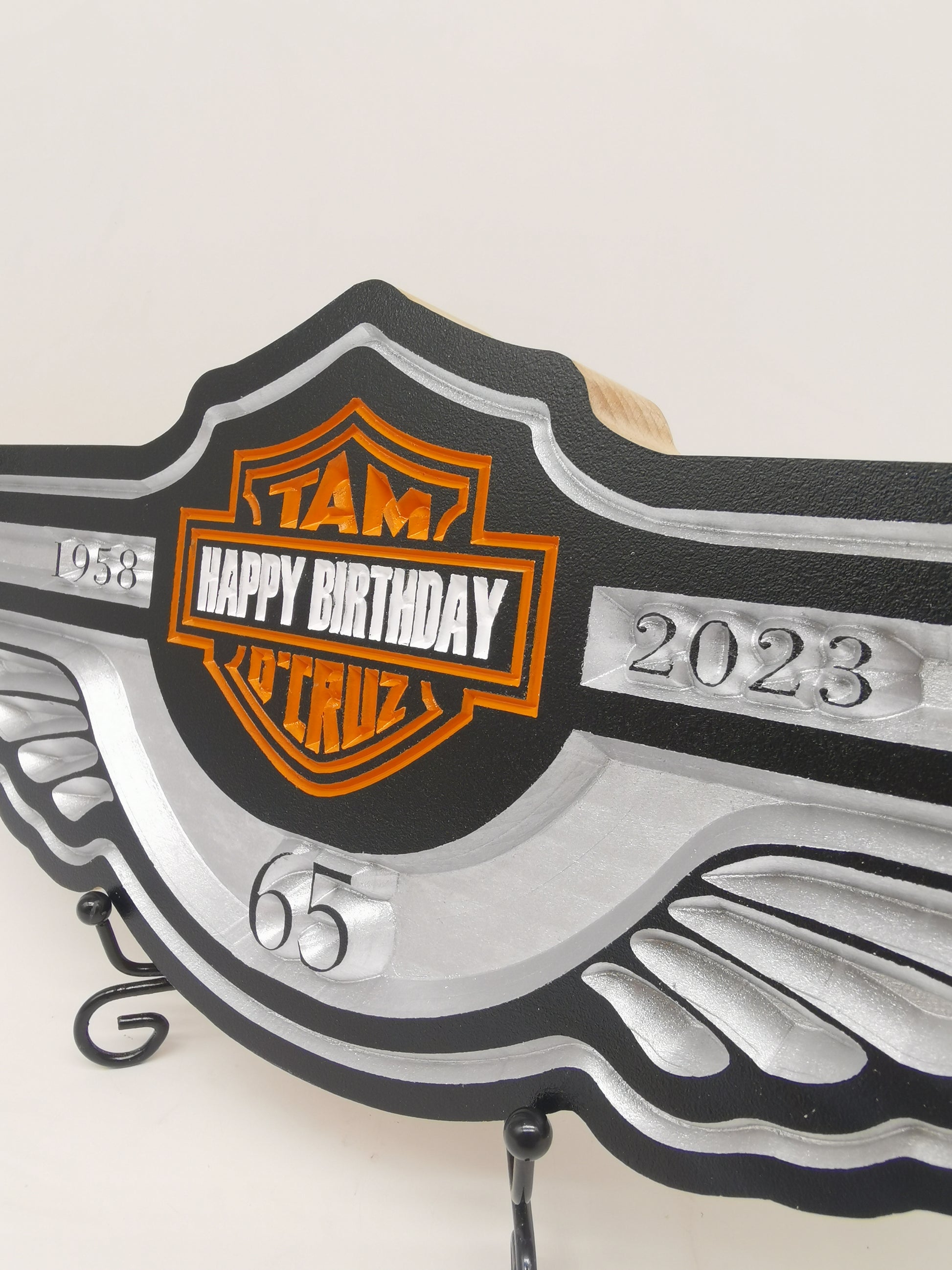 We can change HARLEY-DAVIDSON to HAPPY BIRTHDAY if you request it.