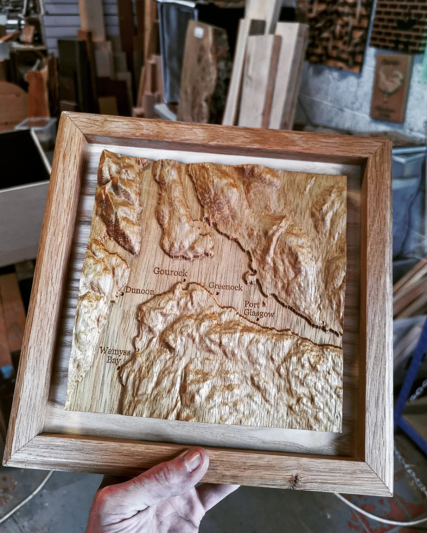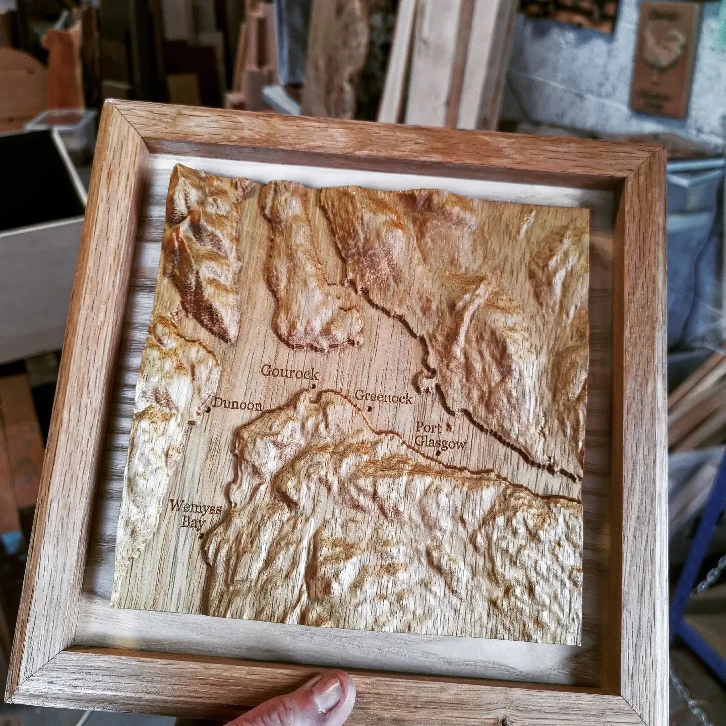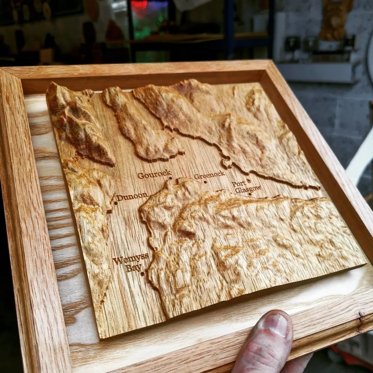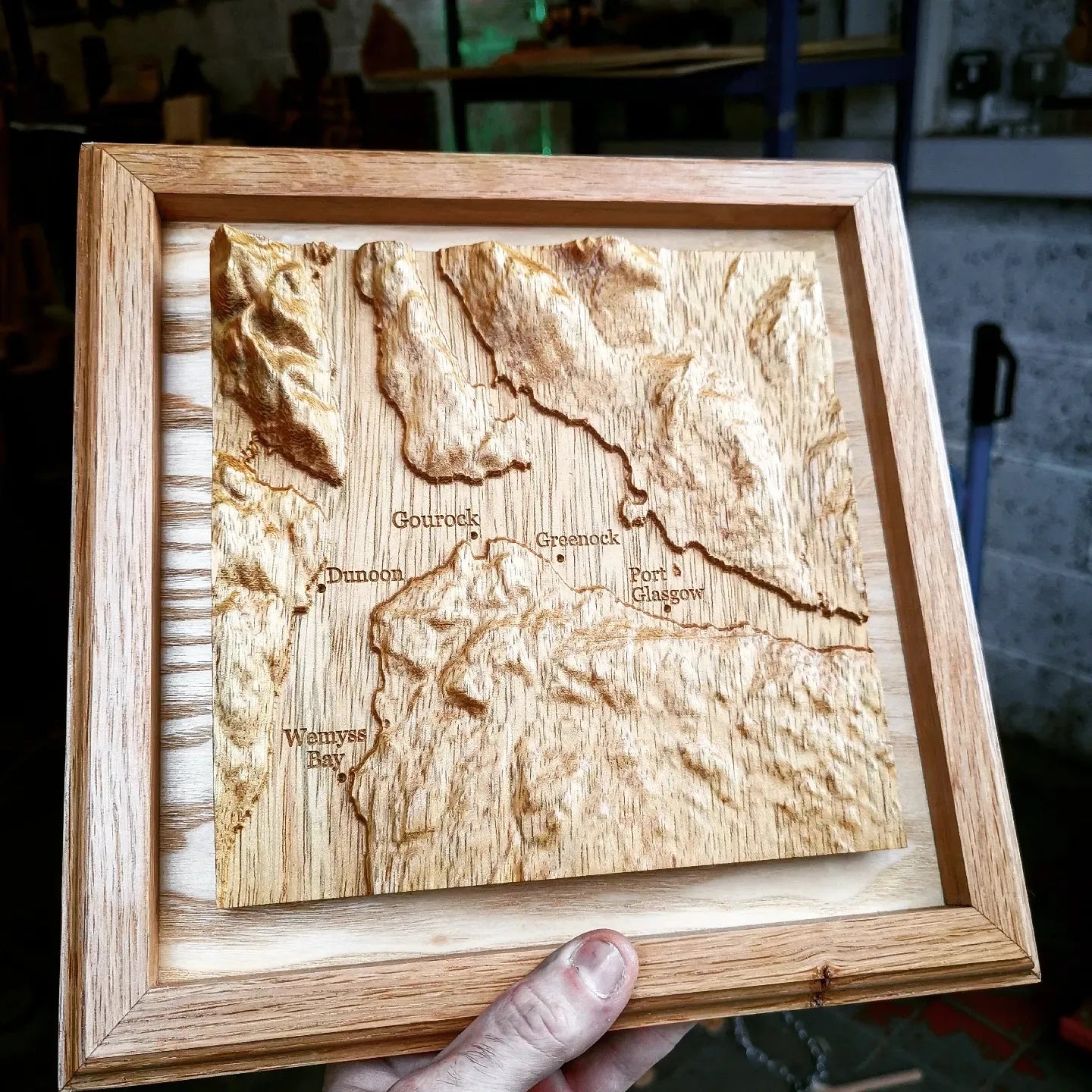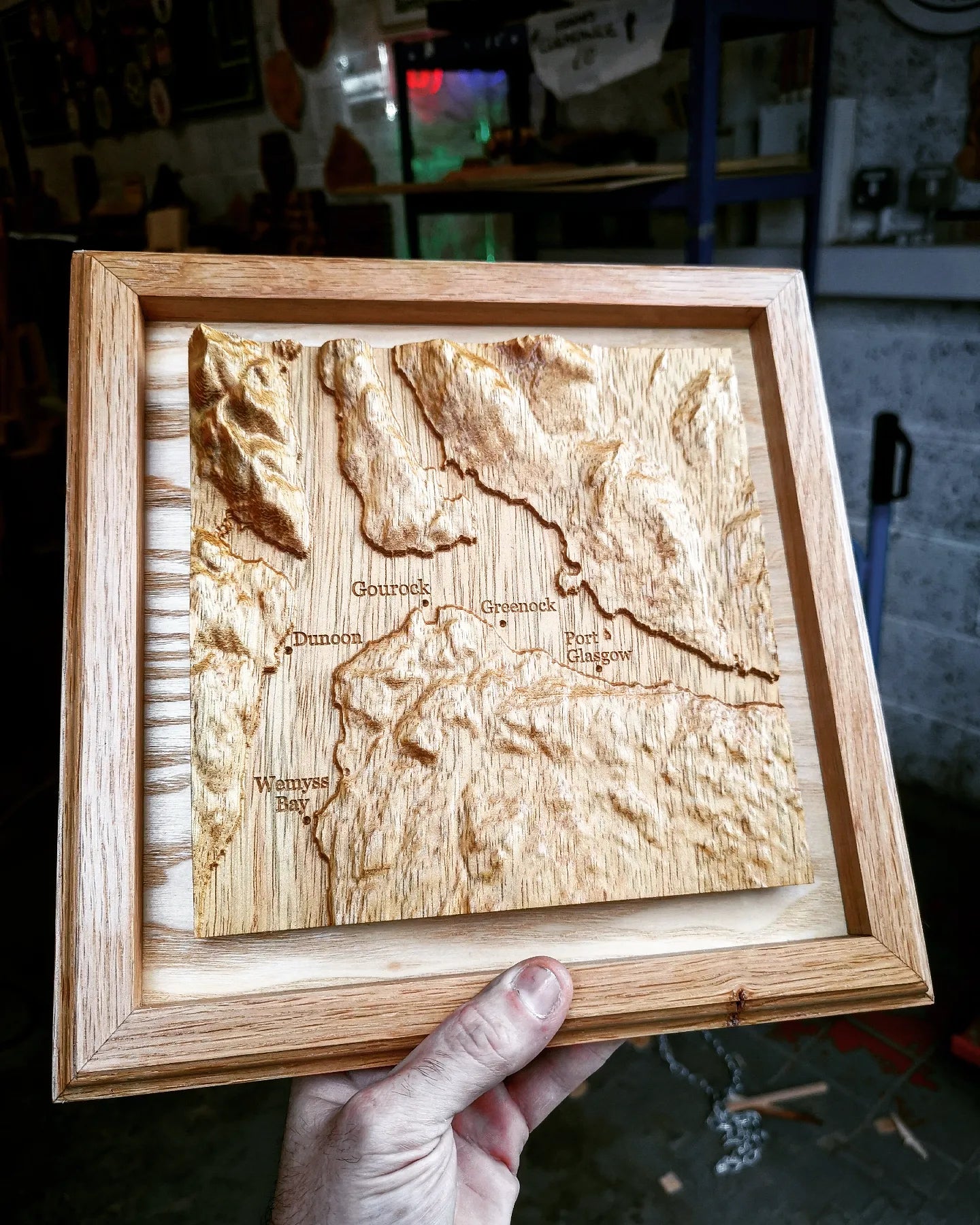 Stunning 3d carved map of Inverclyde and local area, crafted using accurate topographical data for a true depiction of how the country has been shaped over time.