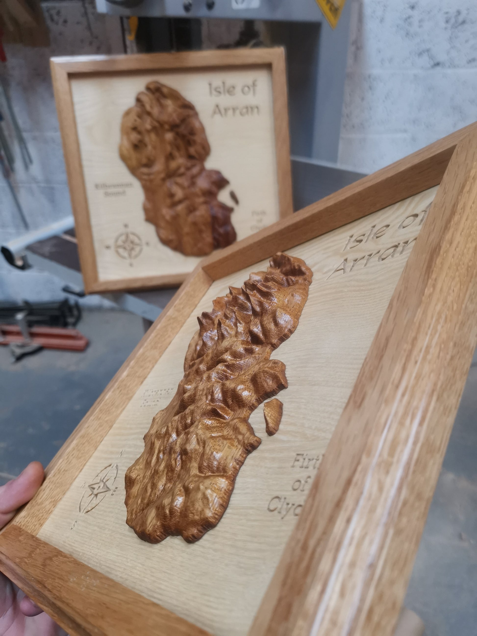 Stunning 3d carved map of Arran, crafted using accurate topographical data for a true depiction of how the Island has been shaped over time.