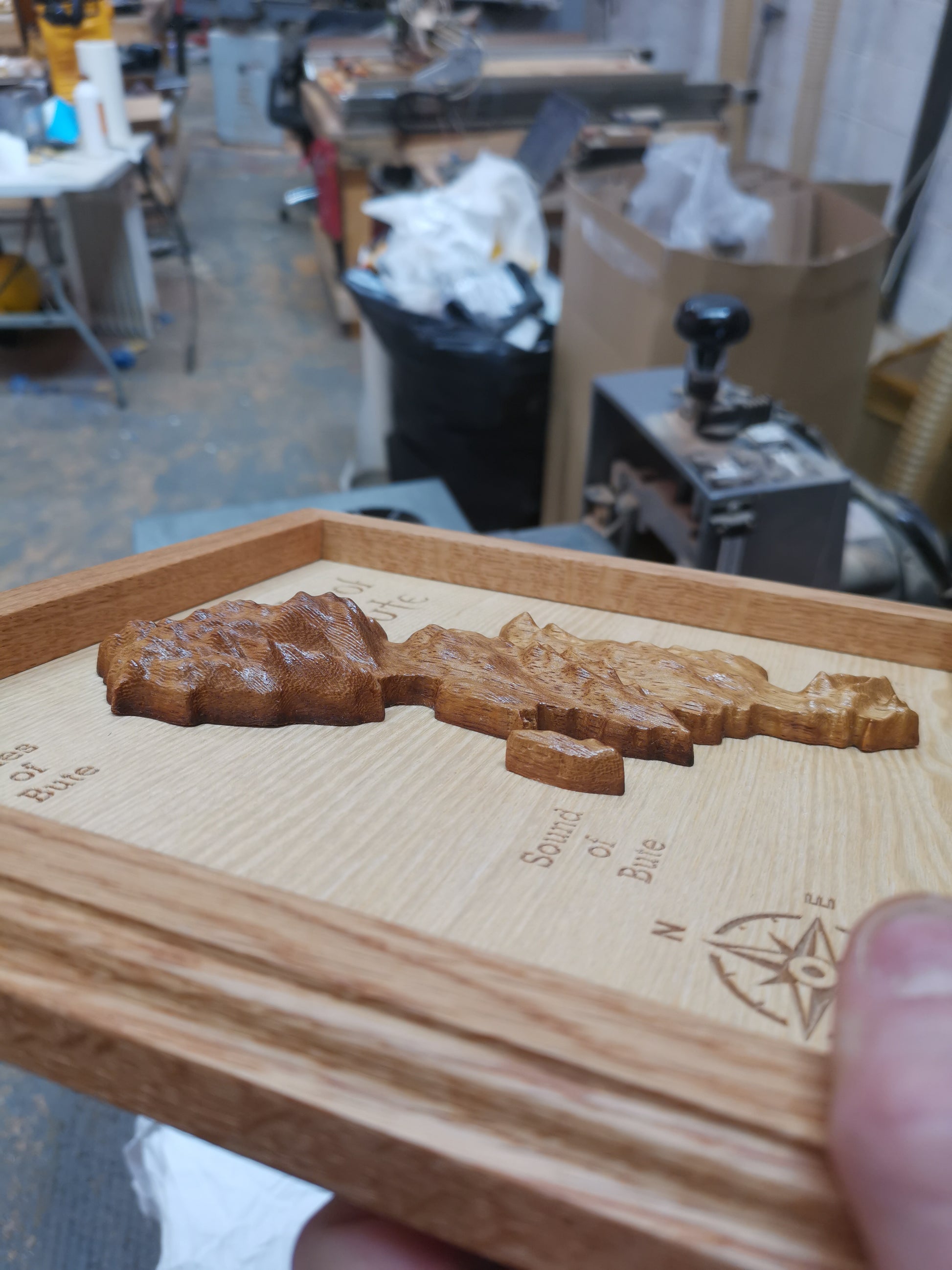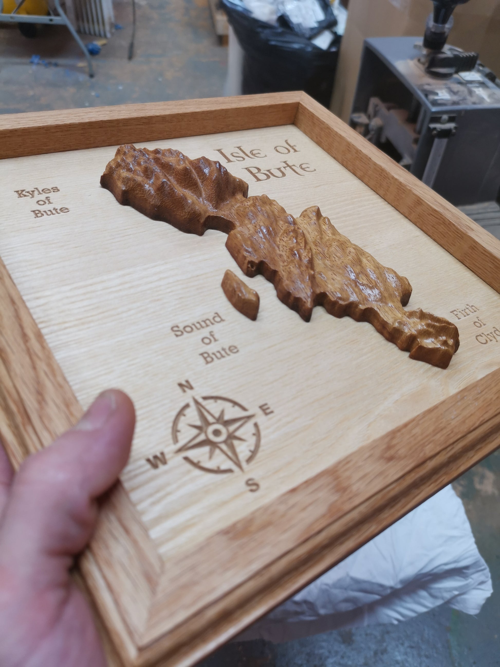 Stunning 3d carved map of the Isle of Bute, crafted using accurate topographical data for a true depiction of how the country has been shaped over time.